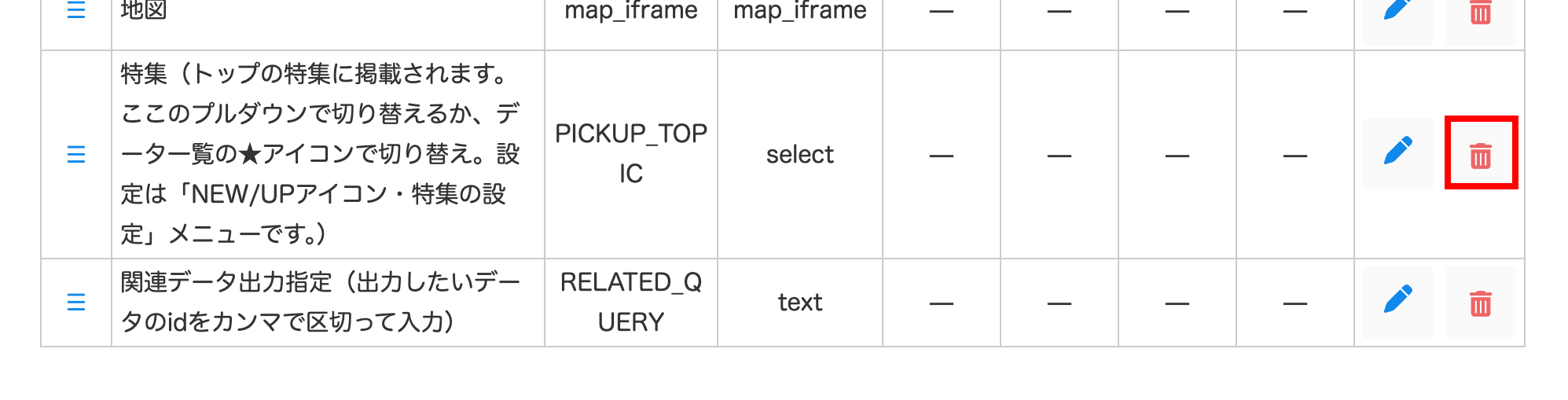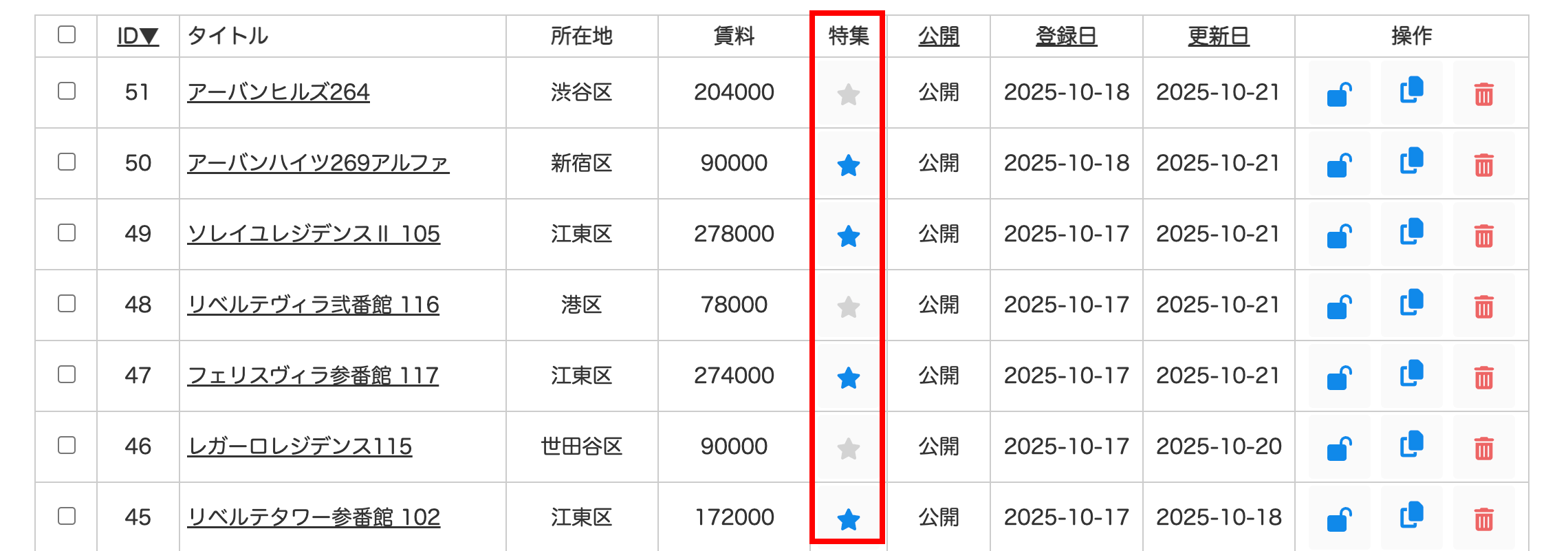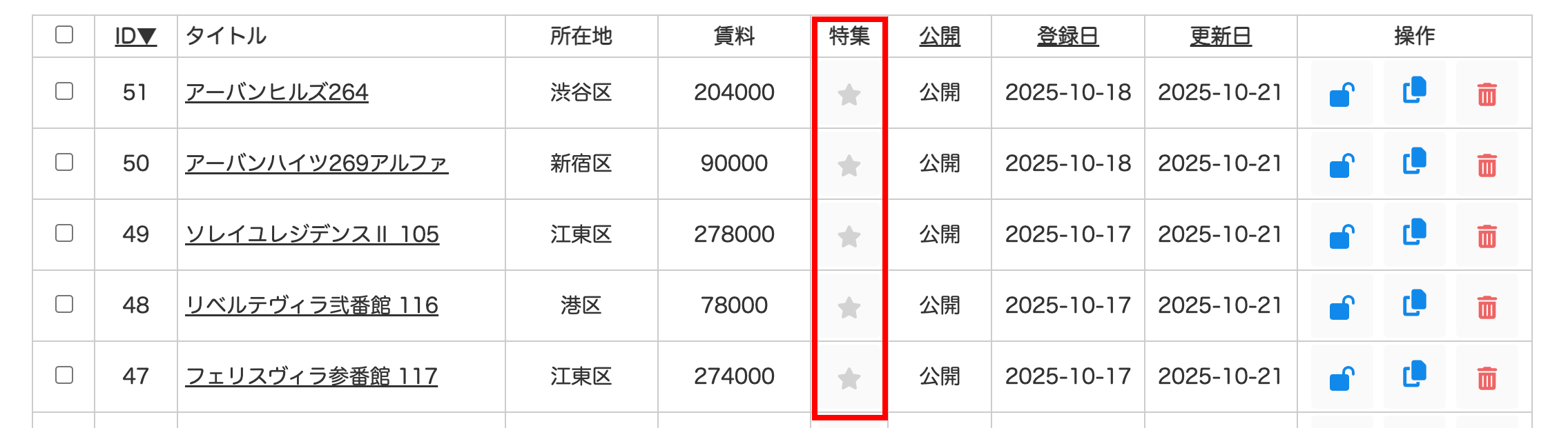 特集は、自動で登録一覧のtable列に追加されるので、フラグのチェックは不要です。