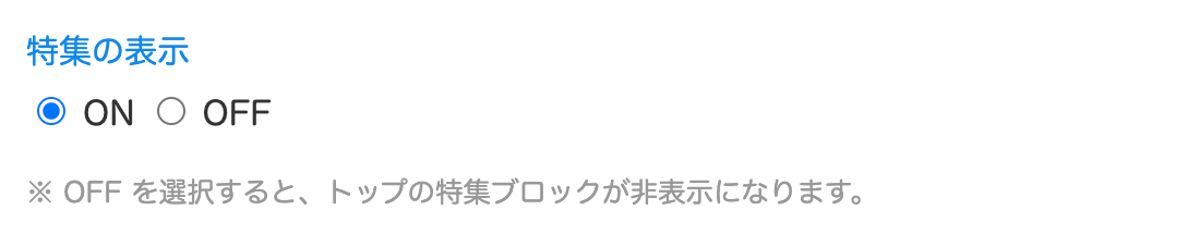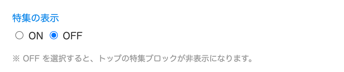 まず、特集の表示を「OFF」に切り替えます。これにより、サイト上の特集データが非表示になります。