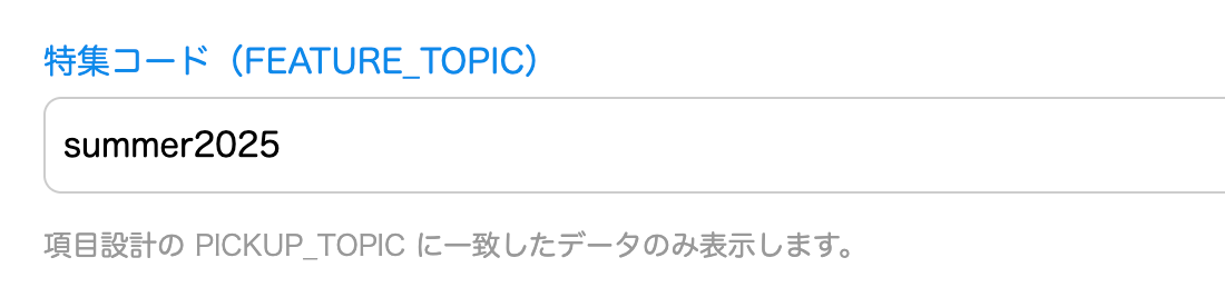 特集コード(FEATURE_TOPIC)を「spring2025」から「summer2025(※例)」に変更します。