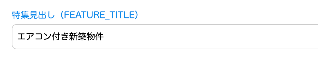 特集見出し(FEATURE_TITLE)を「新卒シーズン ワンルーム特集」から「エアコン付き新築物件(※例)」に変更する。