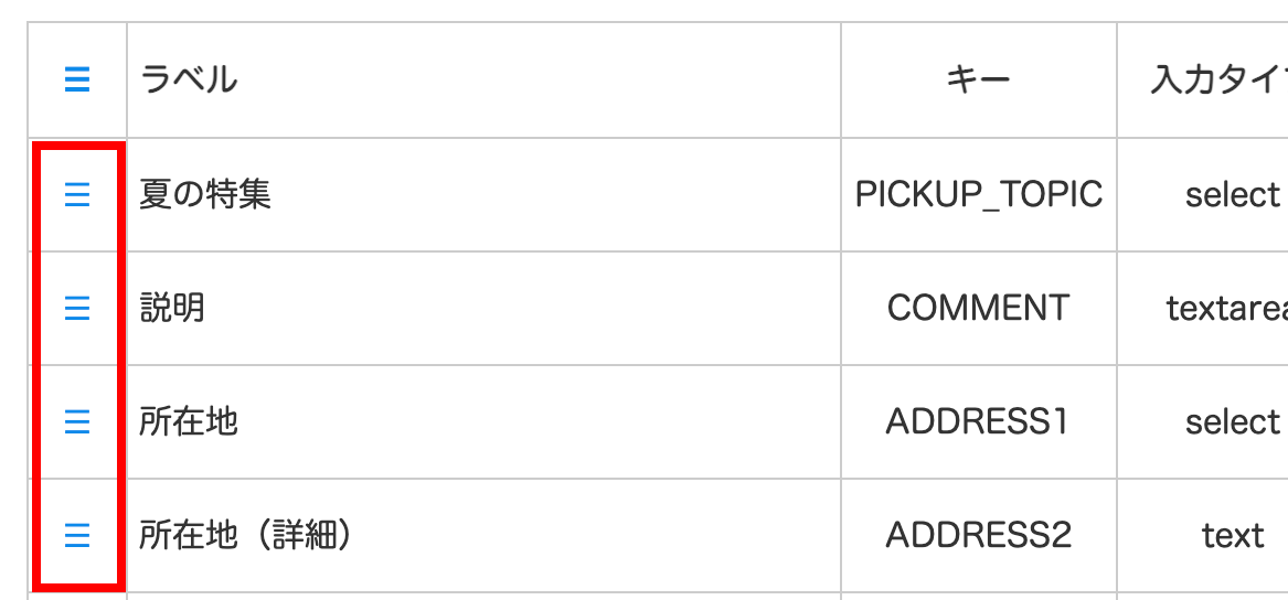 必要があれば ☰ をドラッグして並び順を変更して下さい。