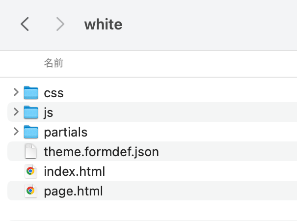 - header.html … ヘッダー用。theme.formdef.jsonで、HEADERを使っている場合に適用されます。(※パーツプルダウンには出ません)