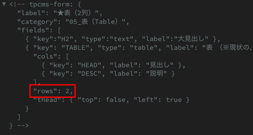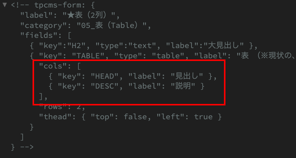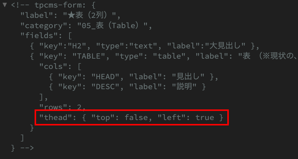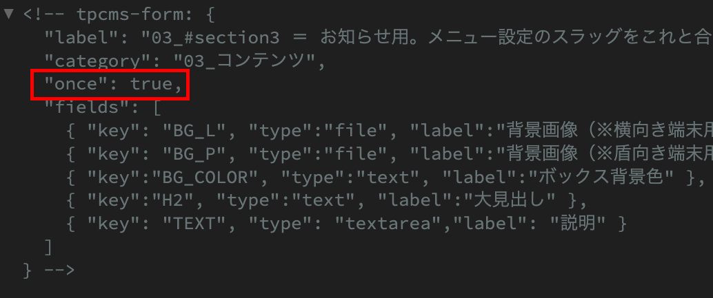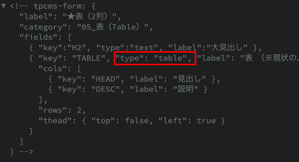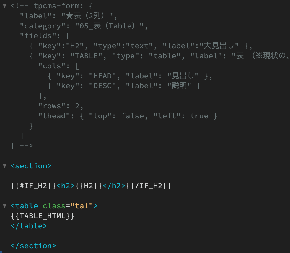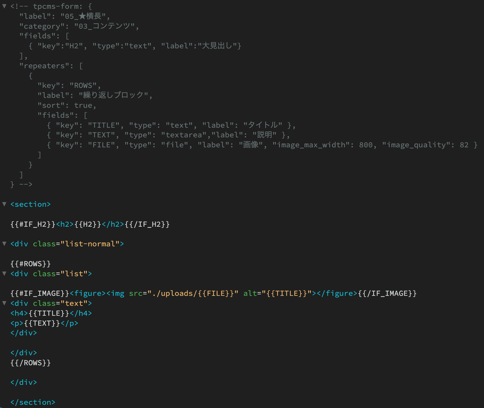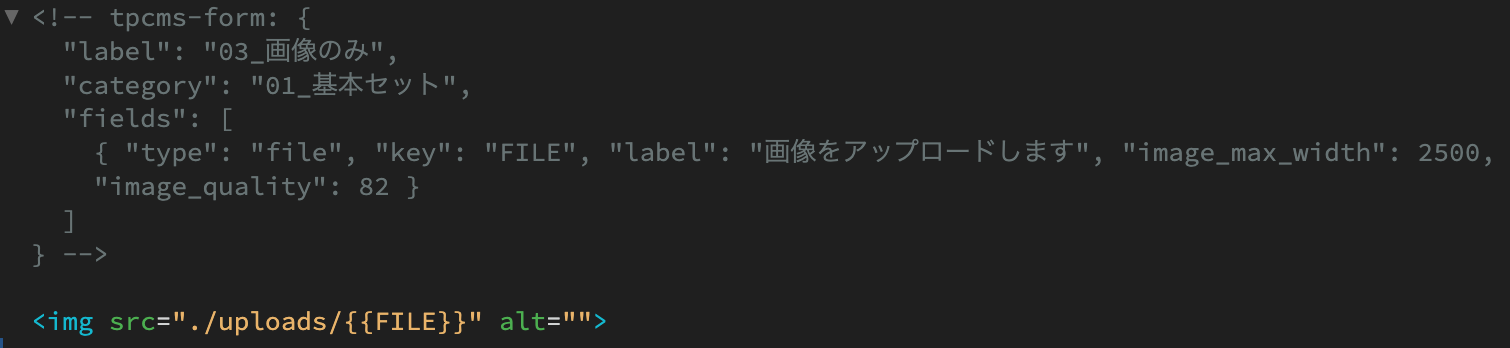 <!-- tpcms-form: {と} -->は、管理画面のフォームとして出力させるために無条件に必要なコードです。