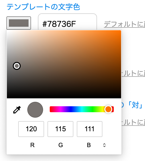 defaultのカラーコードは、デフォルトに戻すための箇所です。うっかり色を変更してしまった場合に元に戻す際に使います。