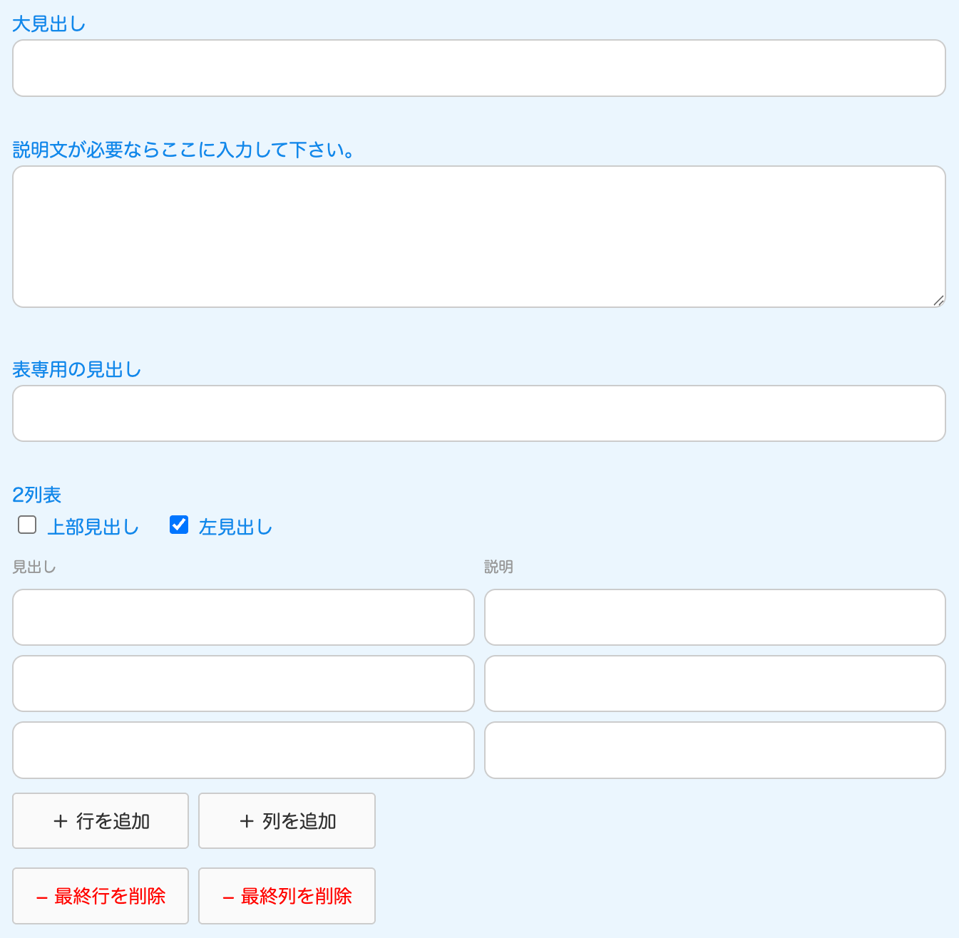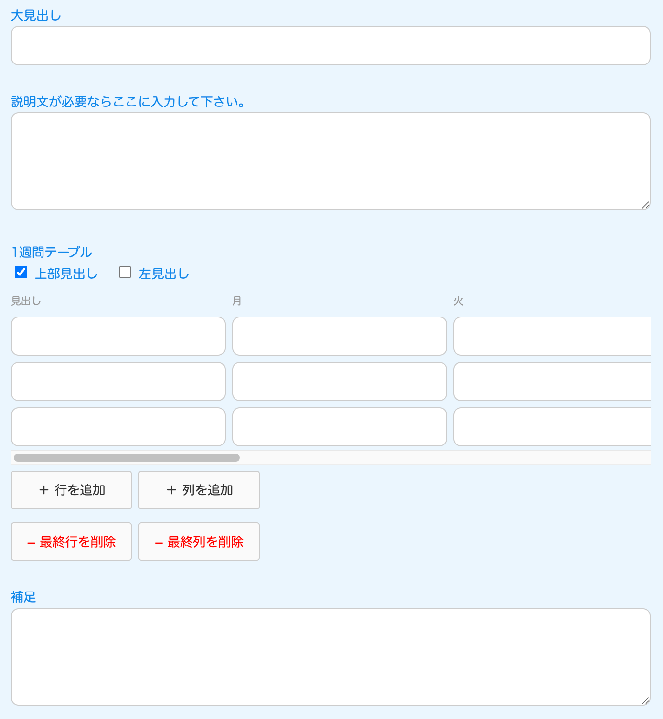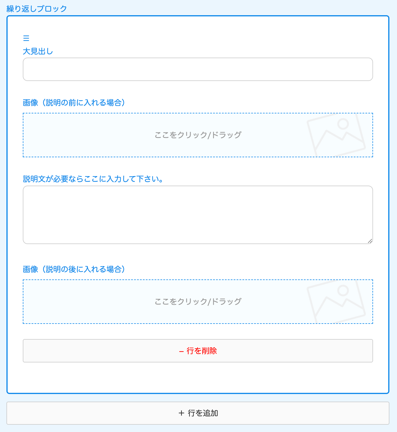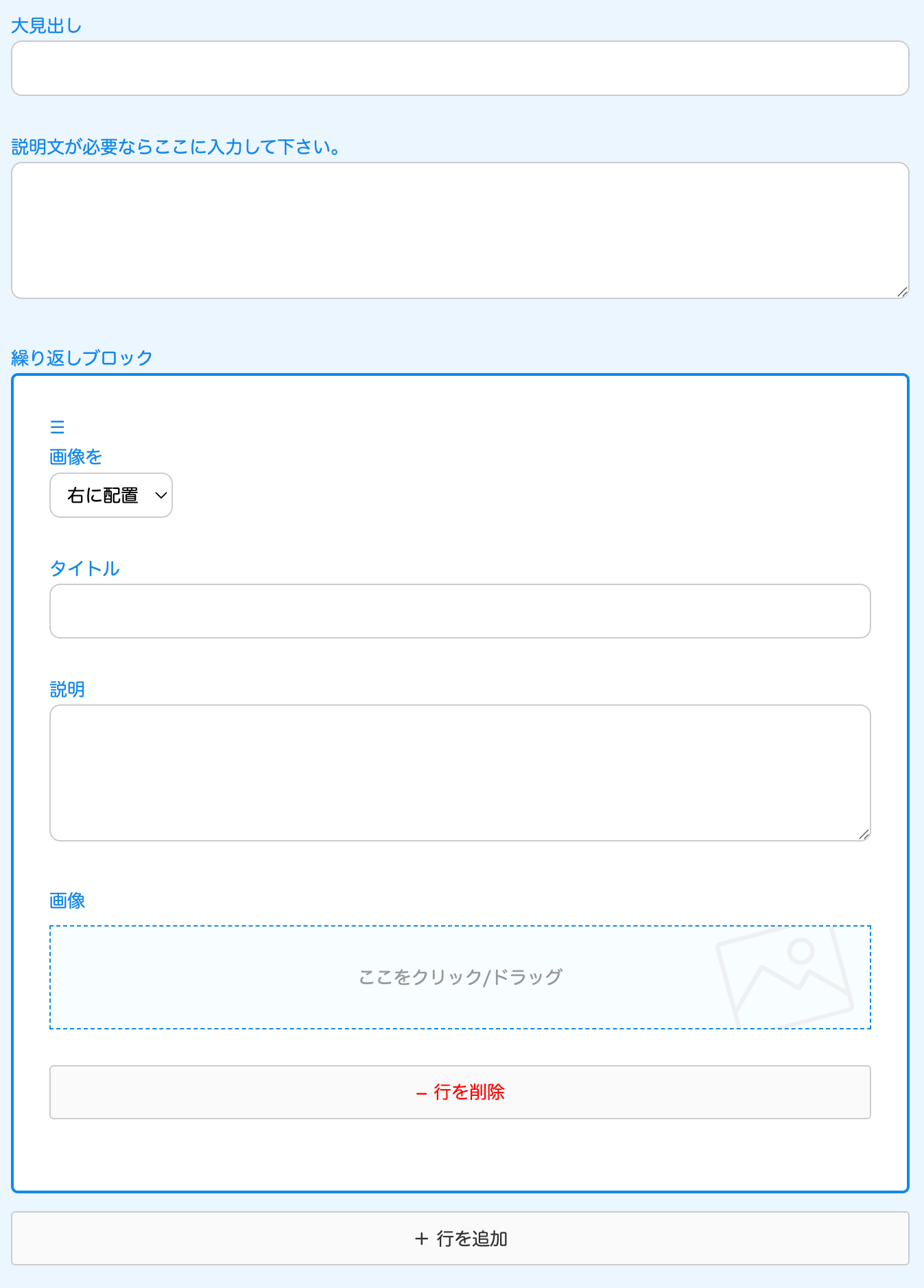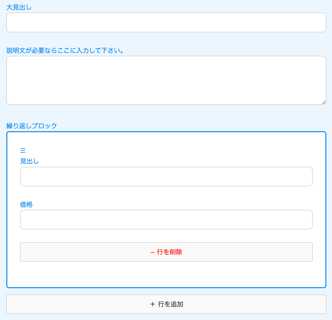 ↓自動で出てくる入力フォーム。お知らせの場合は、見出しのみです。