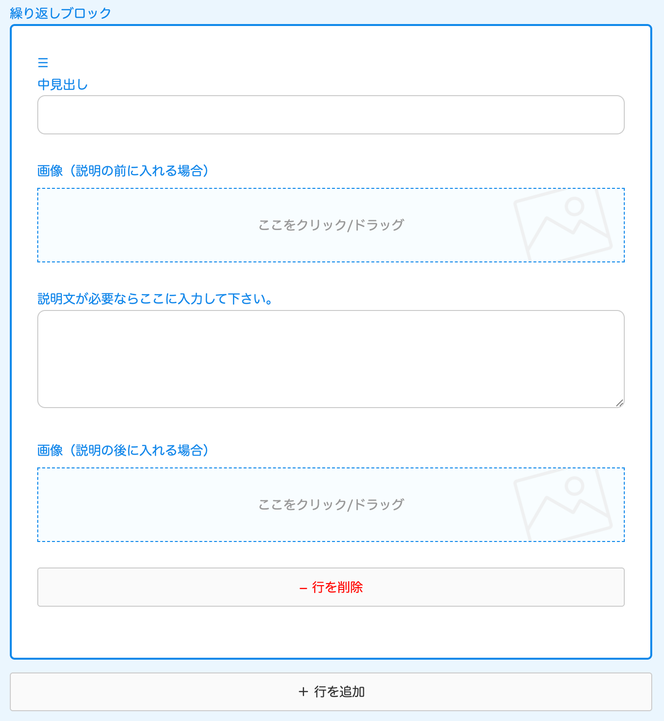 全て使う必要はなく、たとえば、画像はどちらか1つだけアップロードしてもOK。
