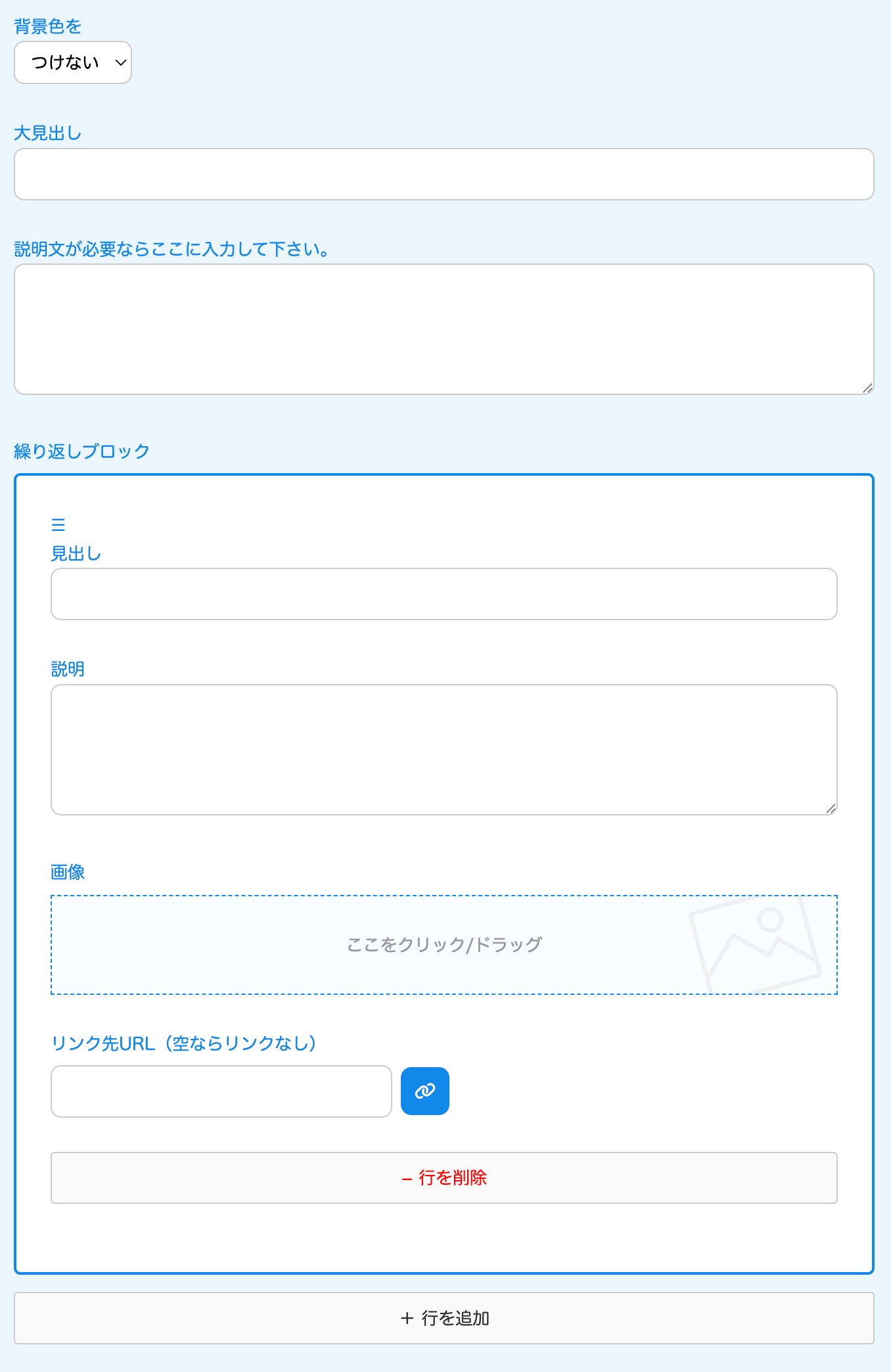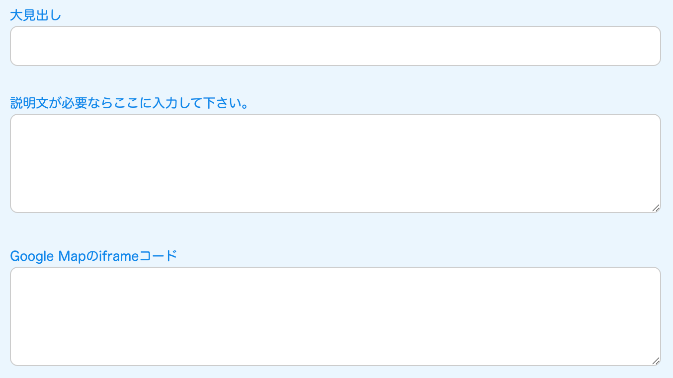 ↓自動で出てくる入力フォーム。こちらも見出しのみです。お知らせ全件が出力されます。