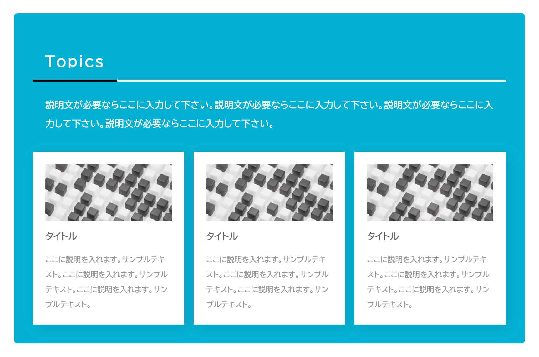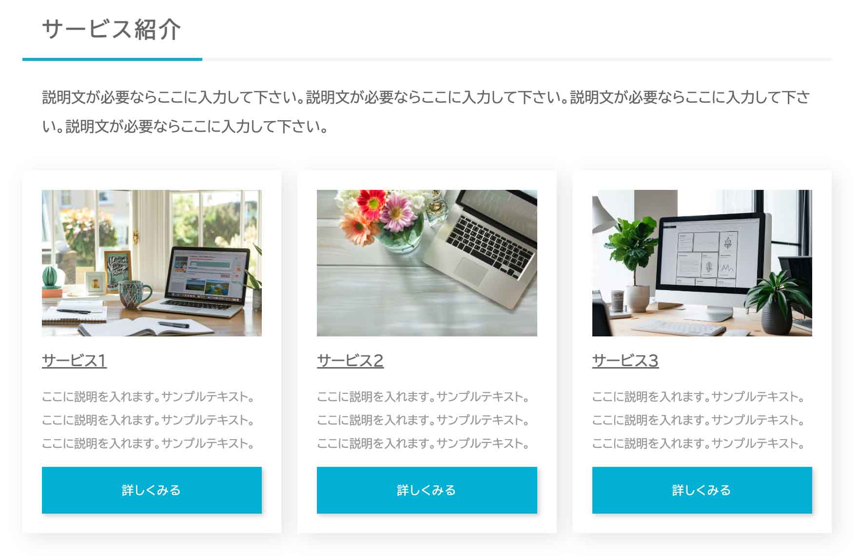 編集したいブロックをクリックして設定パネルを開きます。テンプレートにより、設定内容は異なります。