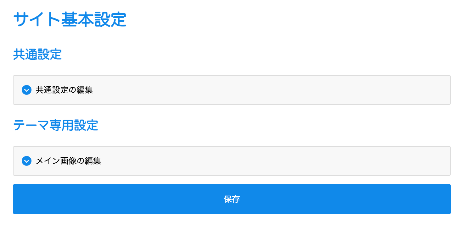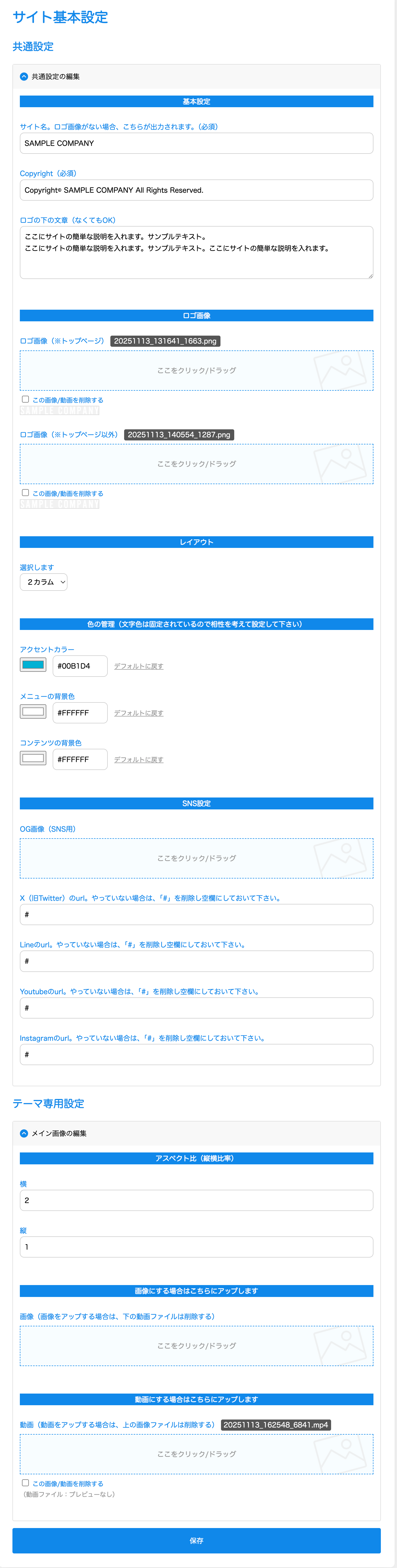 ↓「サイト基本設定」ページです。ロゴやメイン画像はここで設定します。