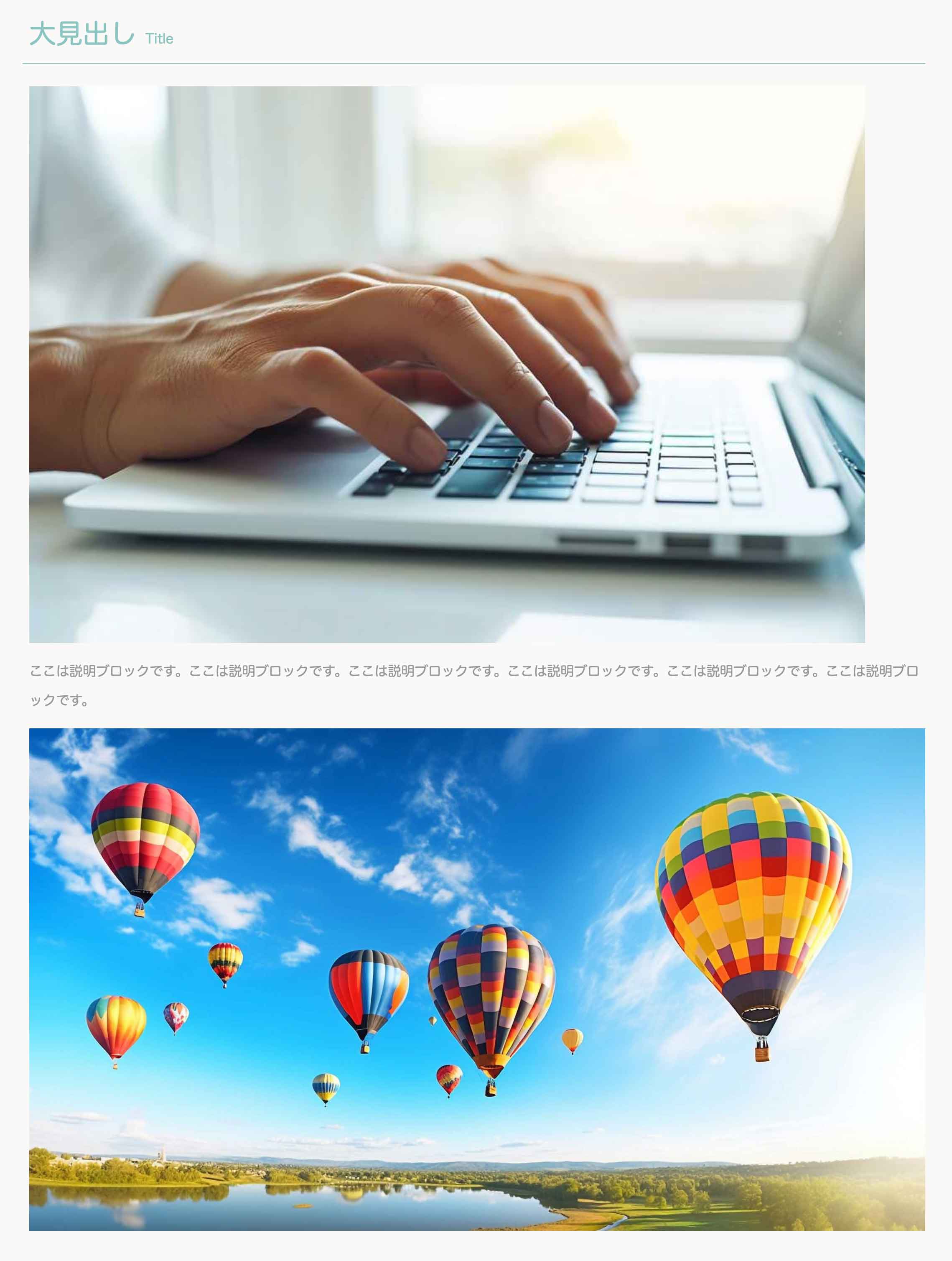 ↓出力例。見出しの場所を「通常」、背景色を「つけない」を選んだ場合。