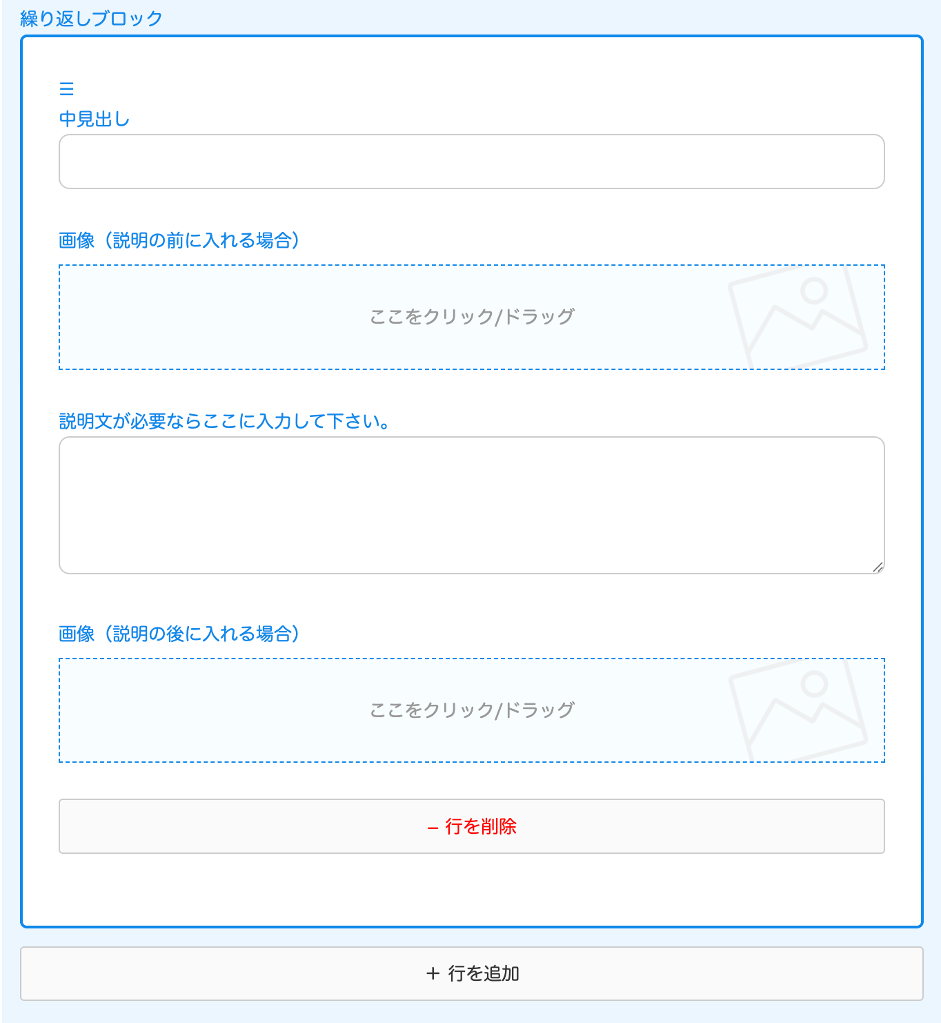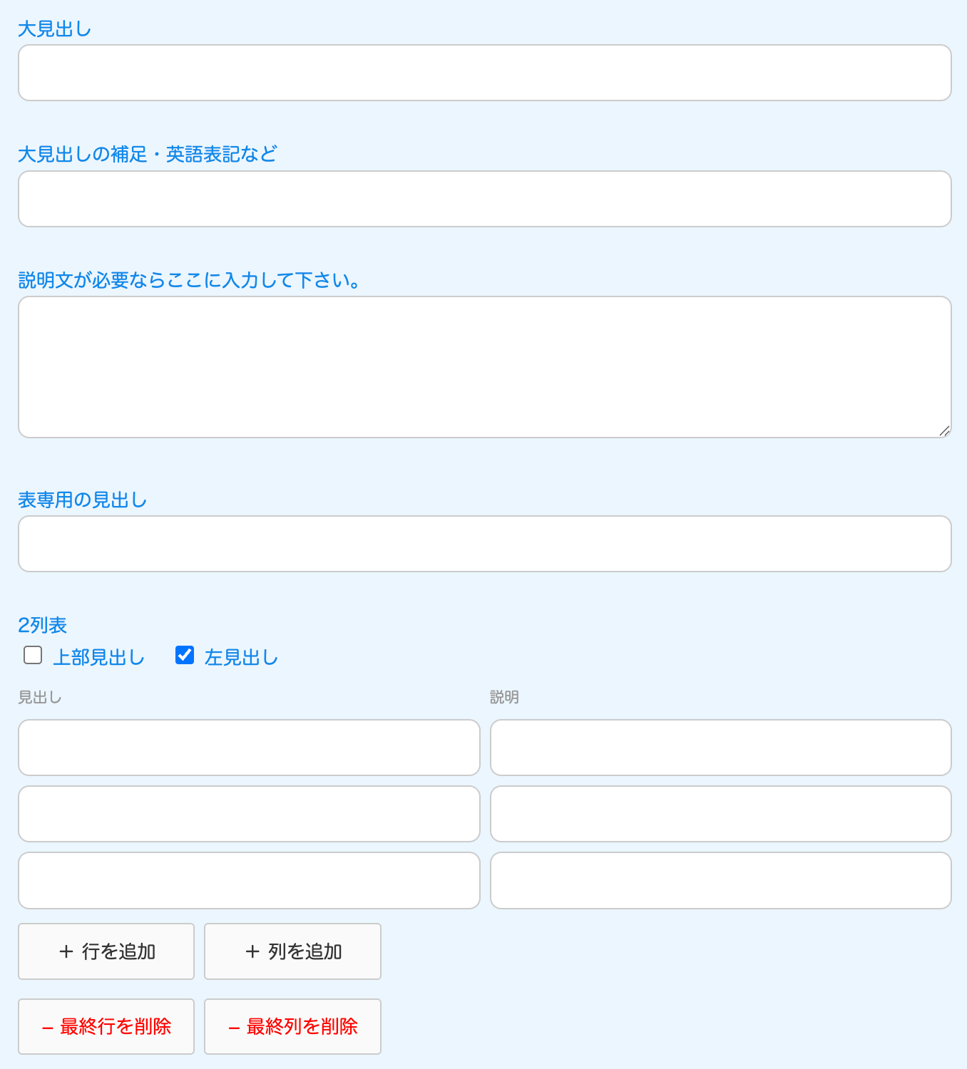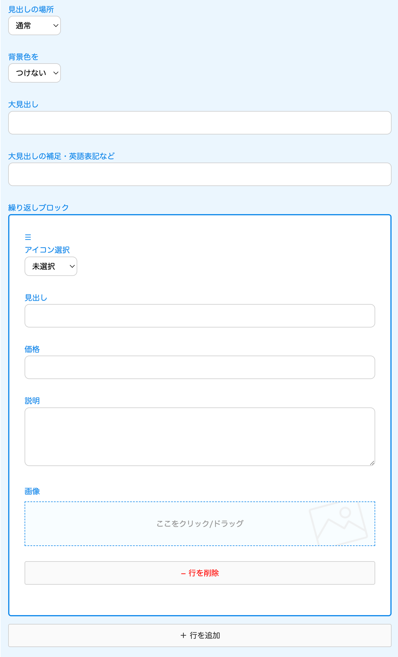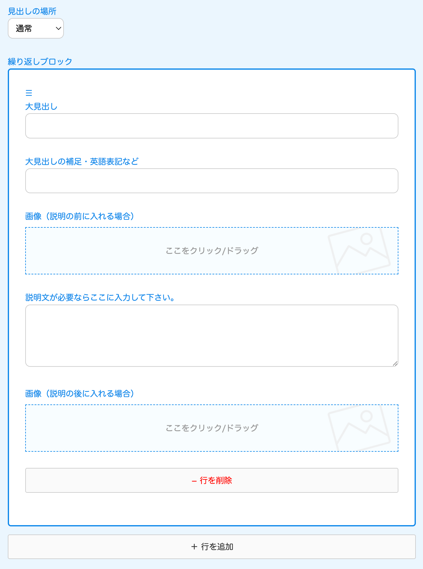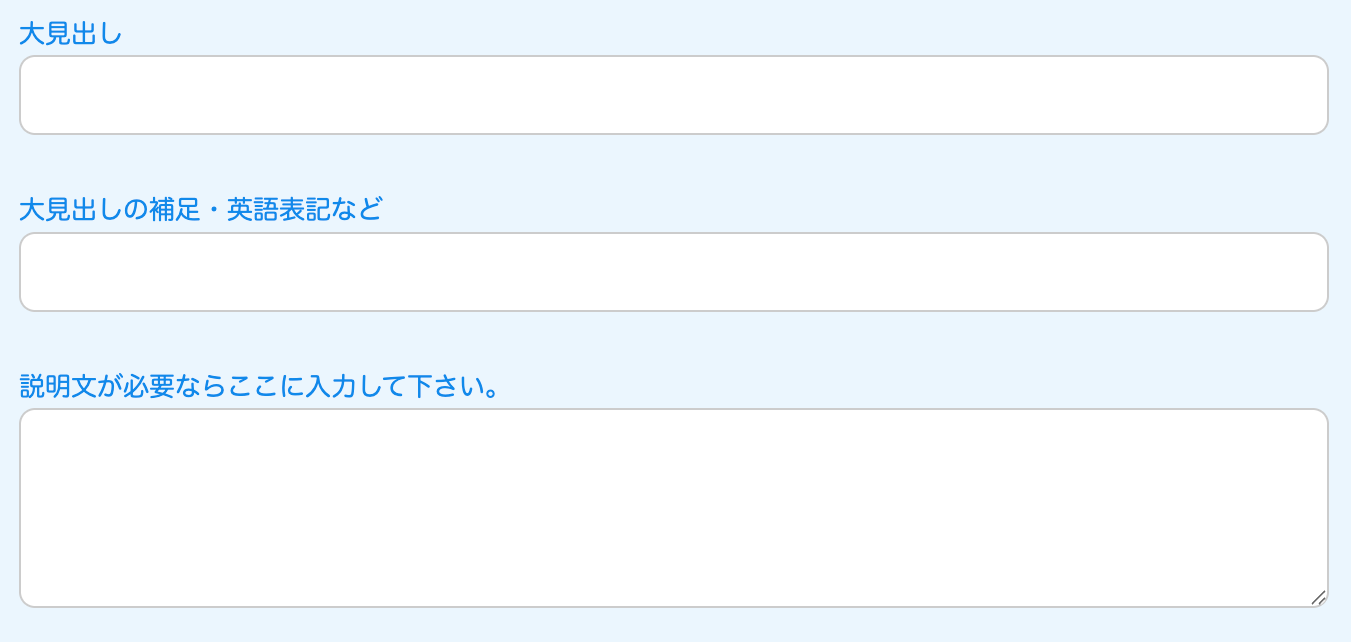 ↓自動で出てくる入力フォーム。お知らせの場合は、見出しのみです。