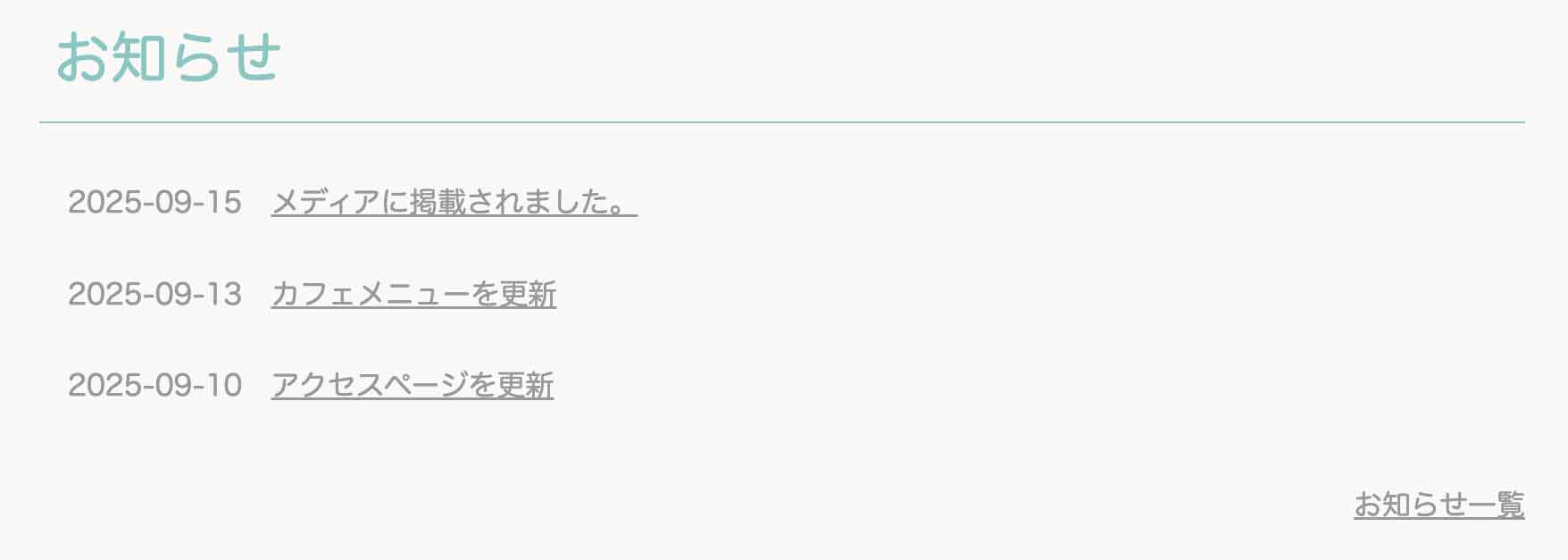 ↓自動で出てくる入力フォーム。こちらも見出しのみです。お知らせ全件が出力されます。