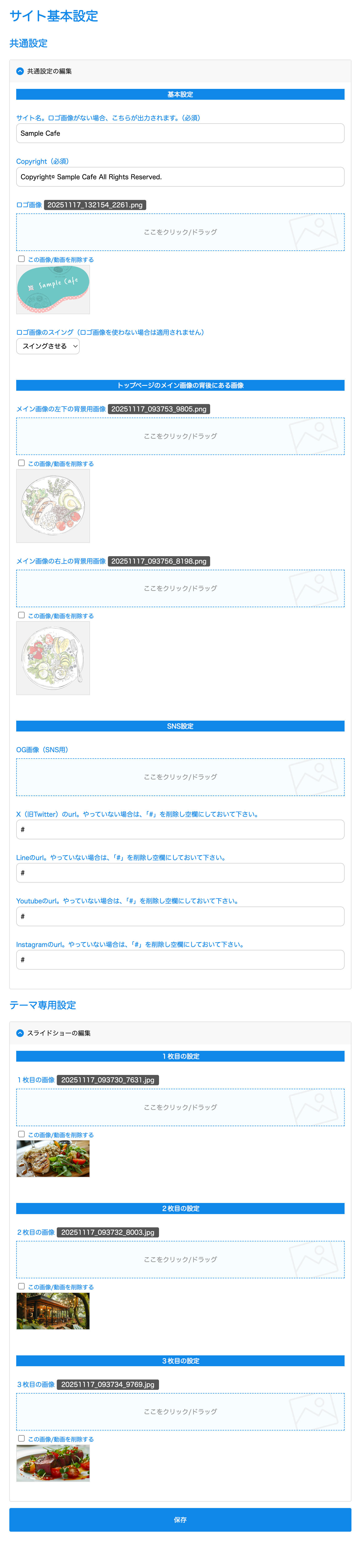 ↓「サイト基本設定」ページです。ロゴやメイン画像はここで設定します。
