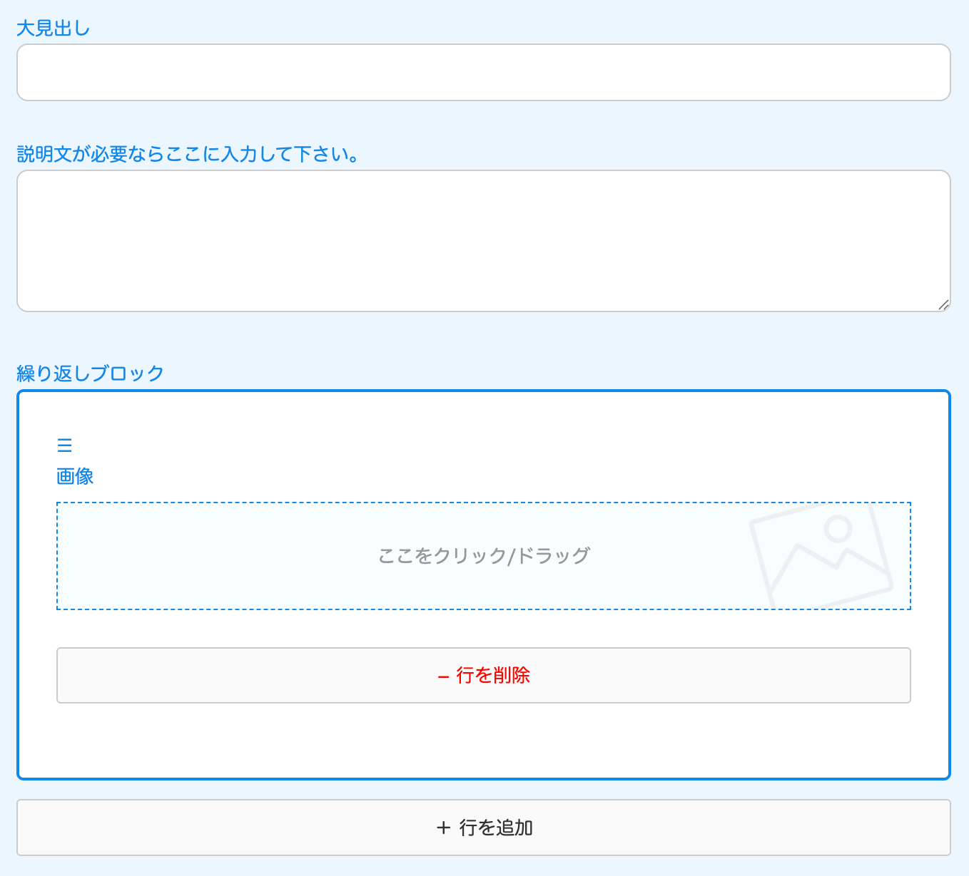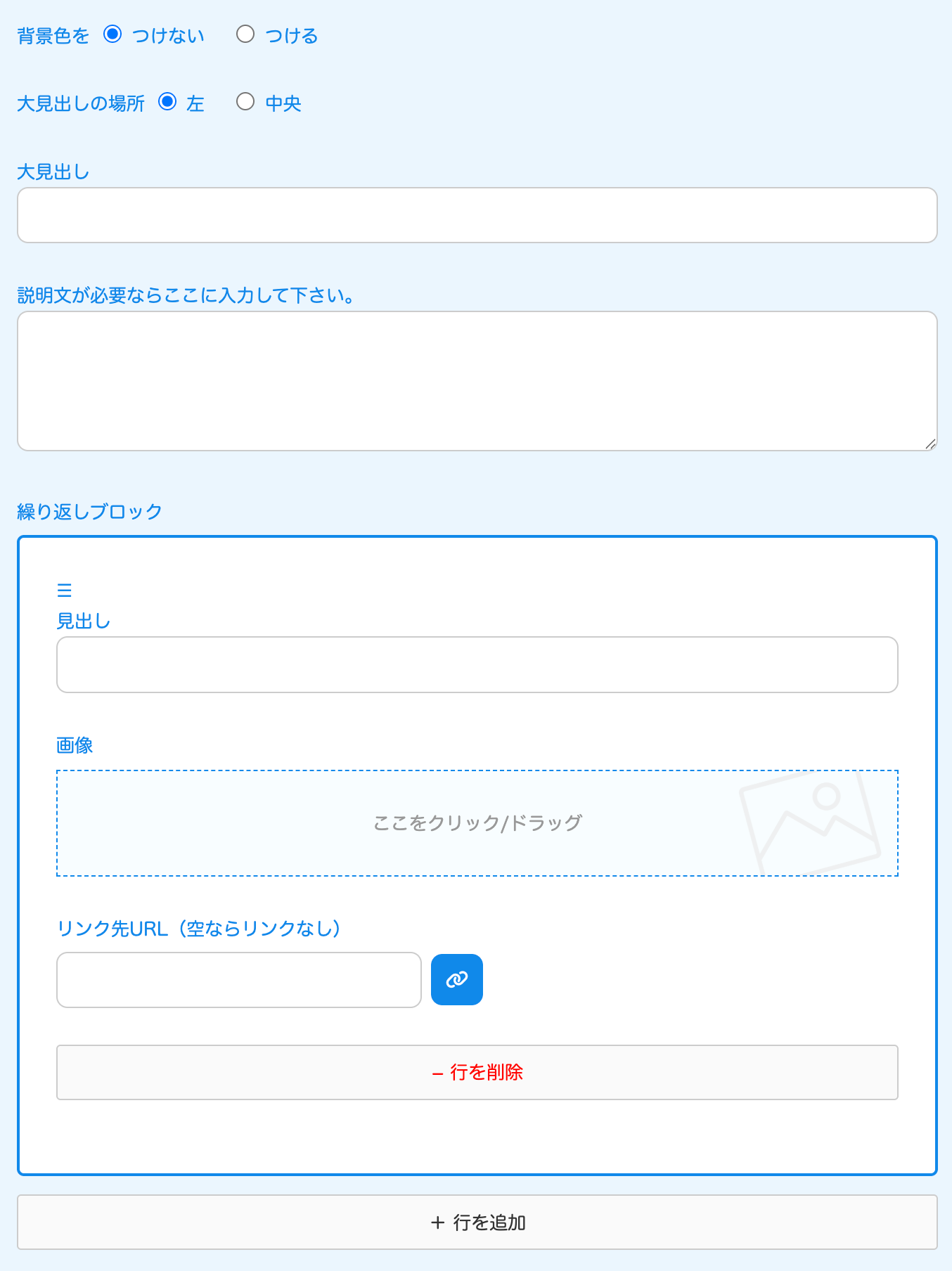 ↓自動で出てくる入力フォーム。お知らせの場合は、見出しのみです。