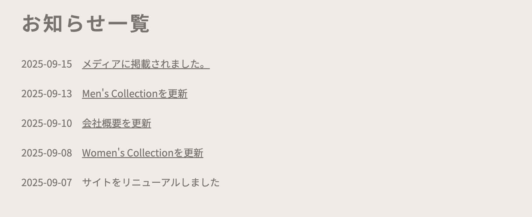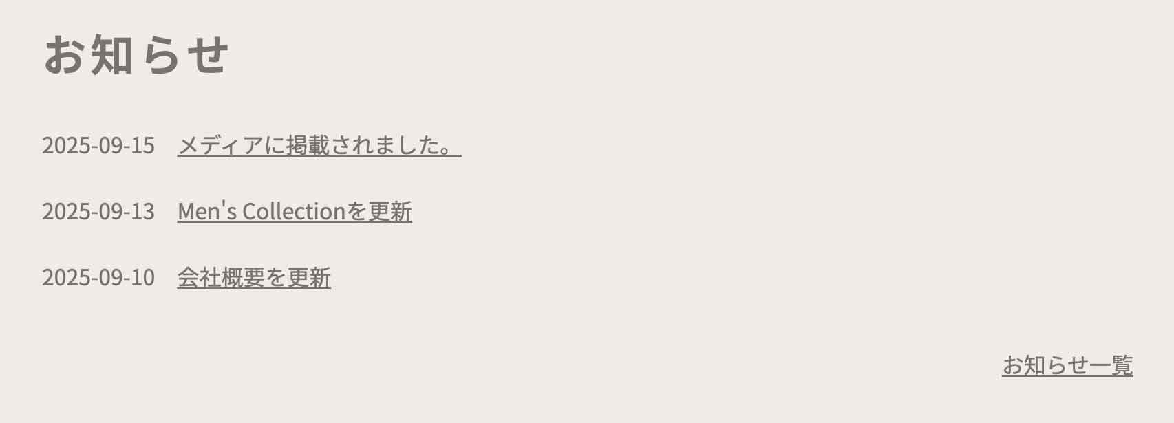 ↓自動で出てくる入力フォーム。こちらも見出しのみです。お知らせ全件が出力されます。