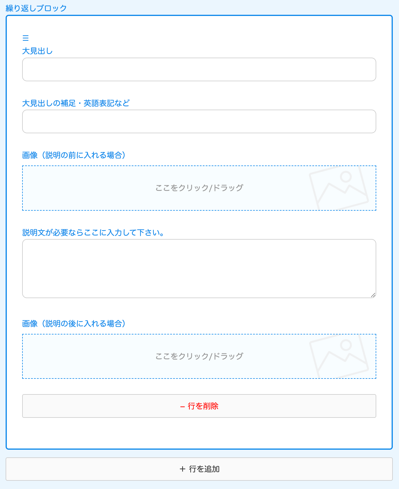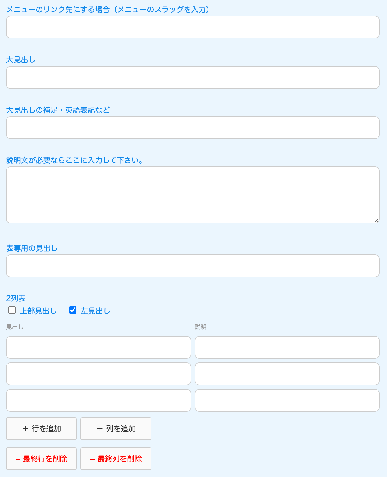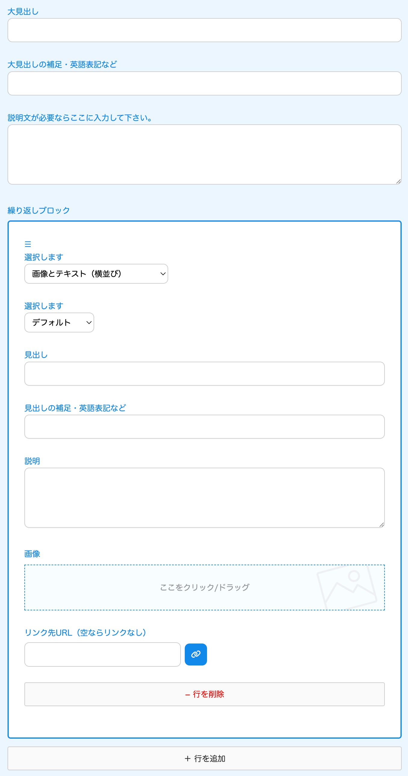 ↓自動で出てくる入力フォーム。お知らせの場合は、見出しのみです。