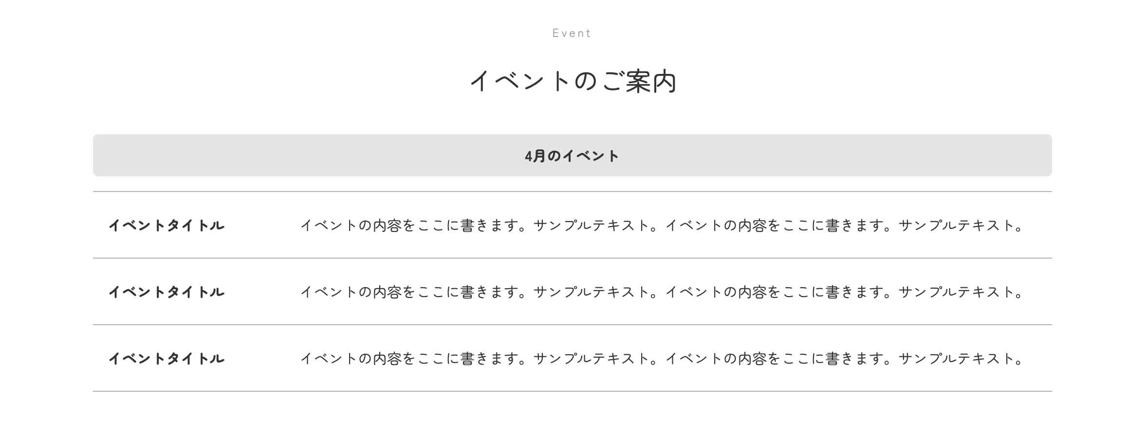 編集したいブロックをクリックして設定パネルを開きます。テンプレートにより、設定内容は異なります。