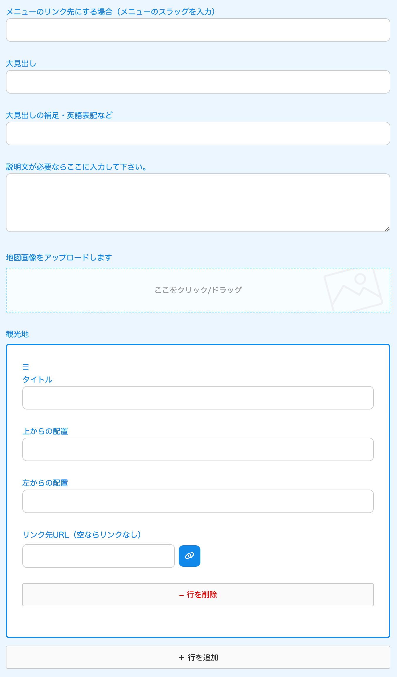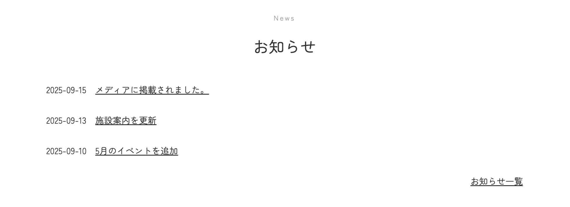 ↓自動で出てくる入力フォーム。こちらも見出しのみです。お知らせ全件が出力されます。
