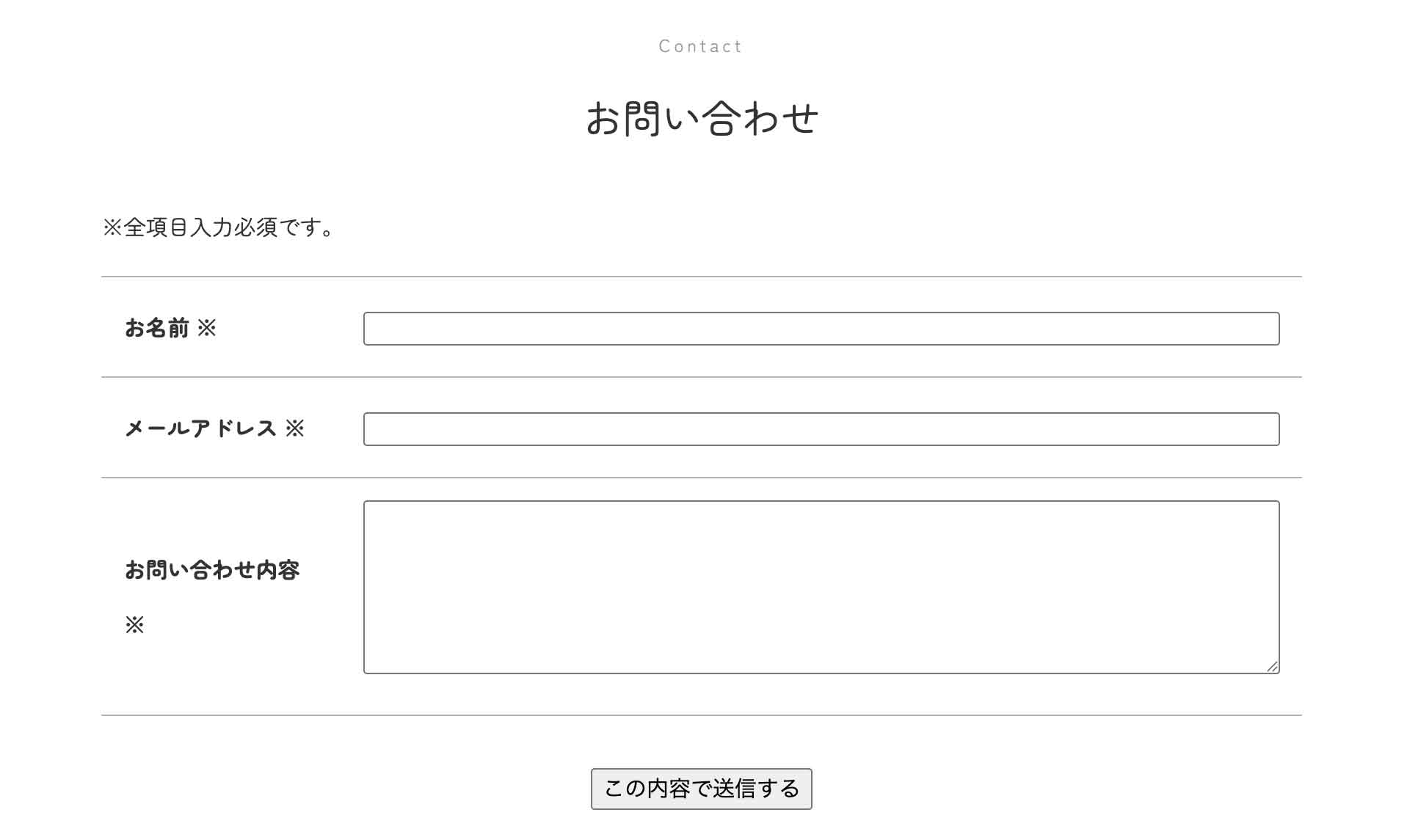 ↓出力例。フォームの設定は、管理ページの「フォーム設定」で行います。フォームのカスタマイズも可能。