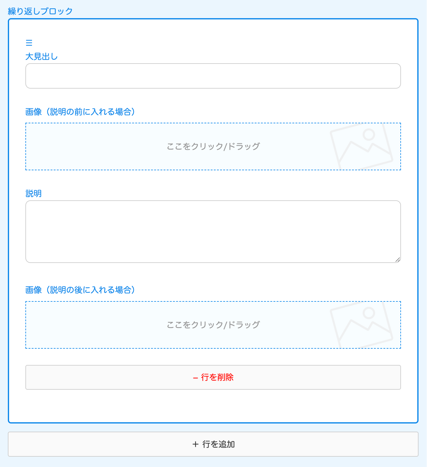 全て使う必要はなく、たとえば、画像はどちらか1つだけアップロードしてもOK。