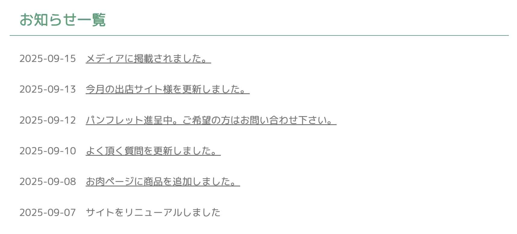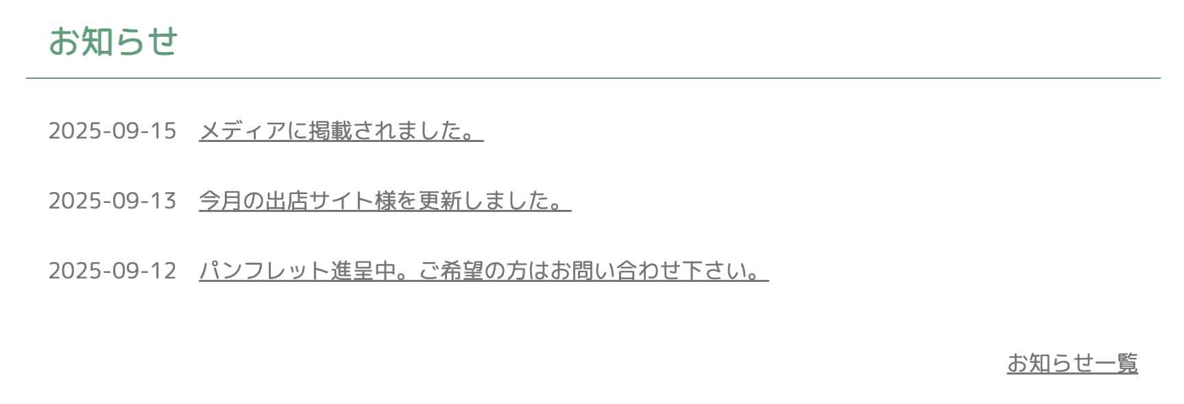 ↓自動で出てくる入力フォーム。こちらも見出しのみです。お知らせ全件が出力されます。