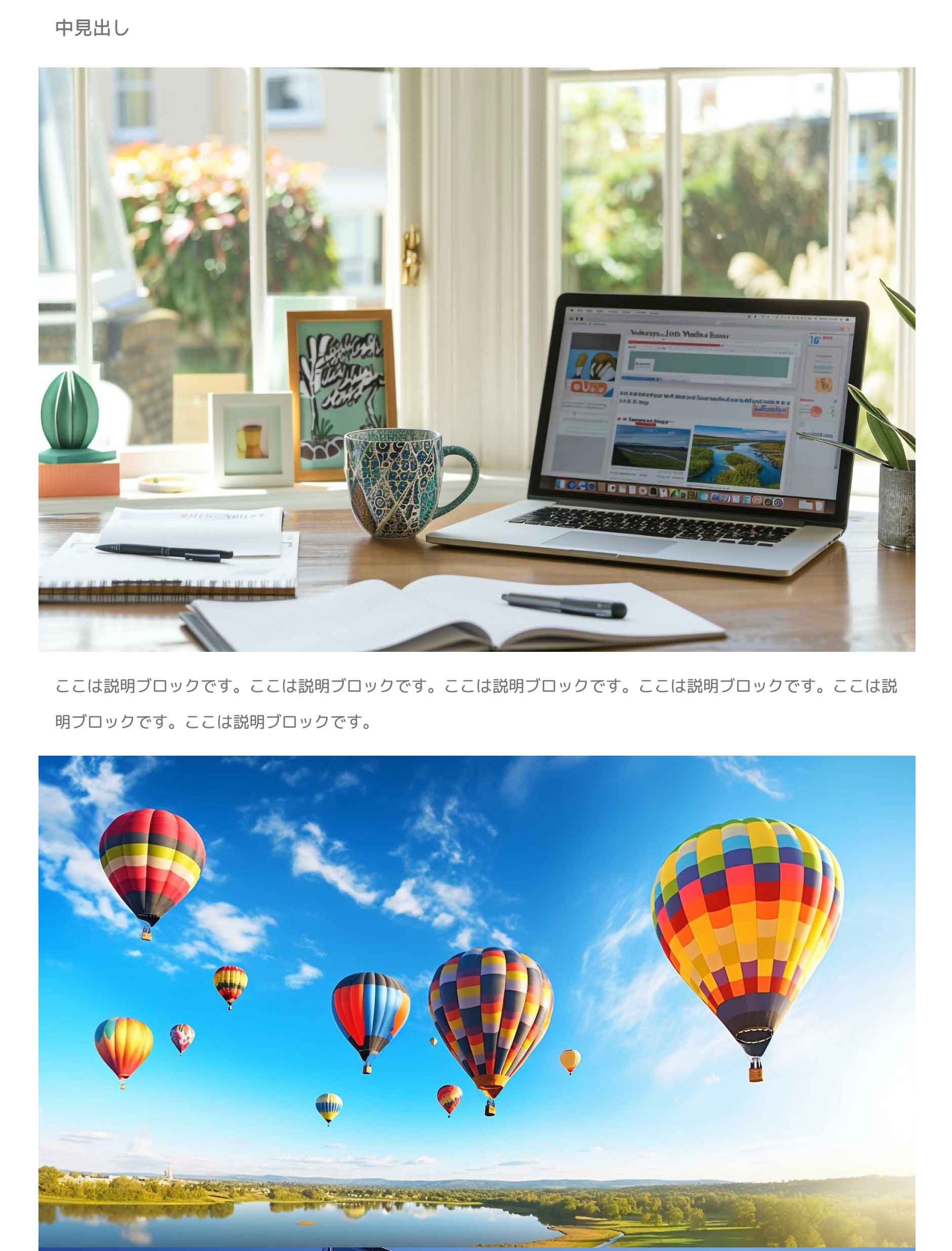 編集したいブロックをクリックして設定パネルを開きます。テンプレートにより、設定内容は異なります。
