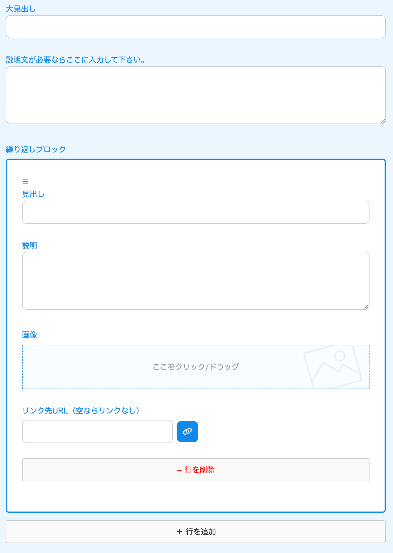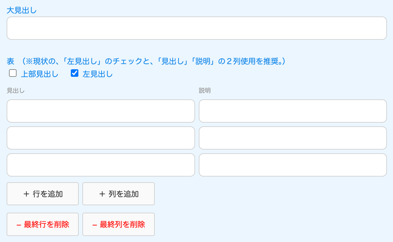↓自動で出てくる入力フォーム。お知らせの場合は、見出しのみです。