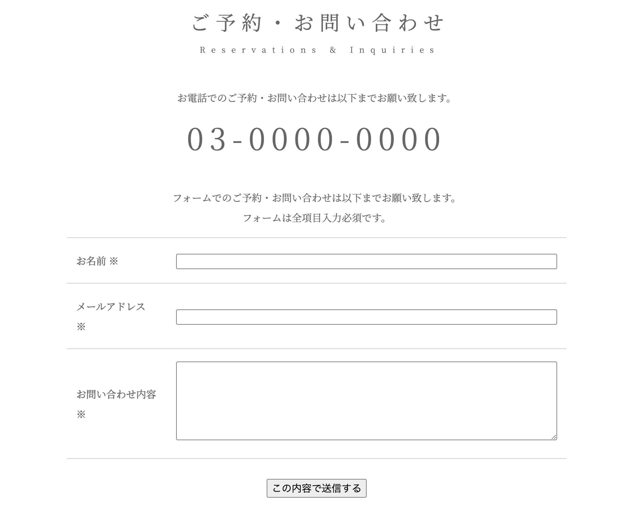 ↓出力例。フォームの設定は、管理ページの「フォーム設定」で行います。フォームのカスタマイズも可能。