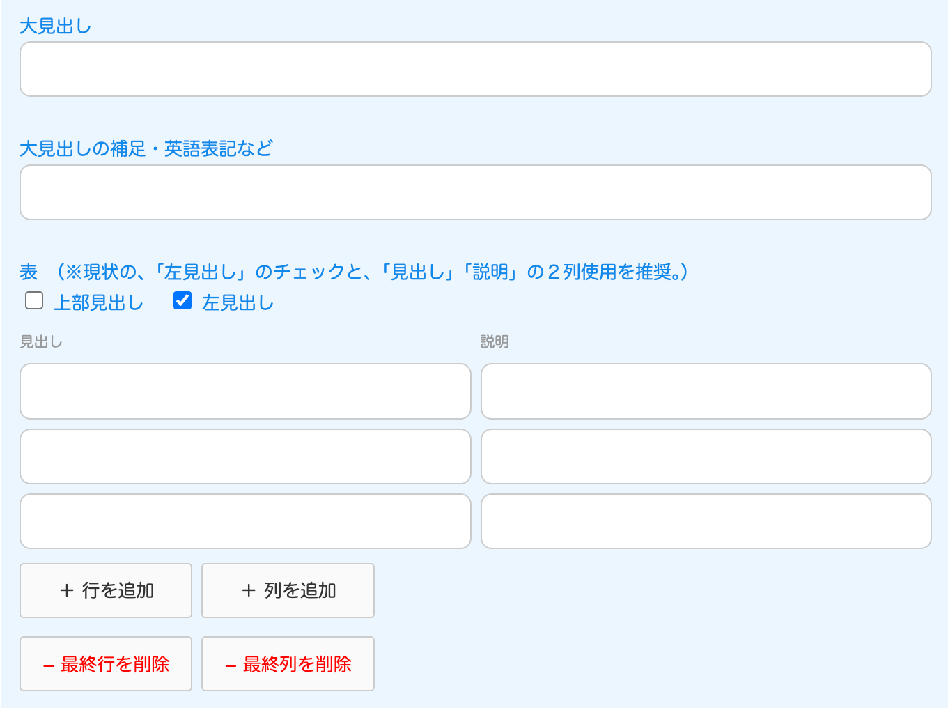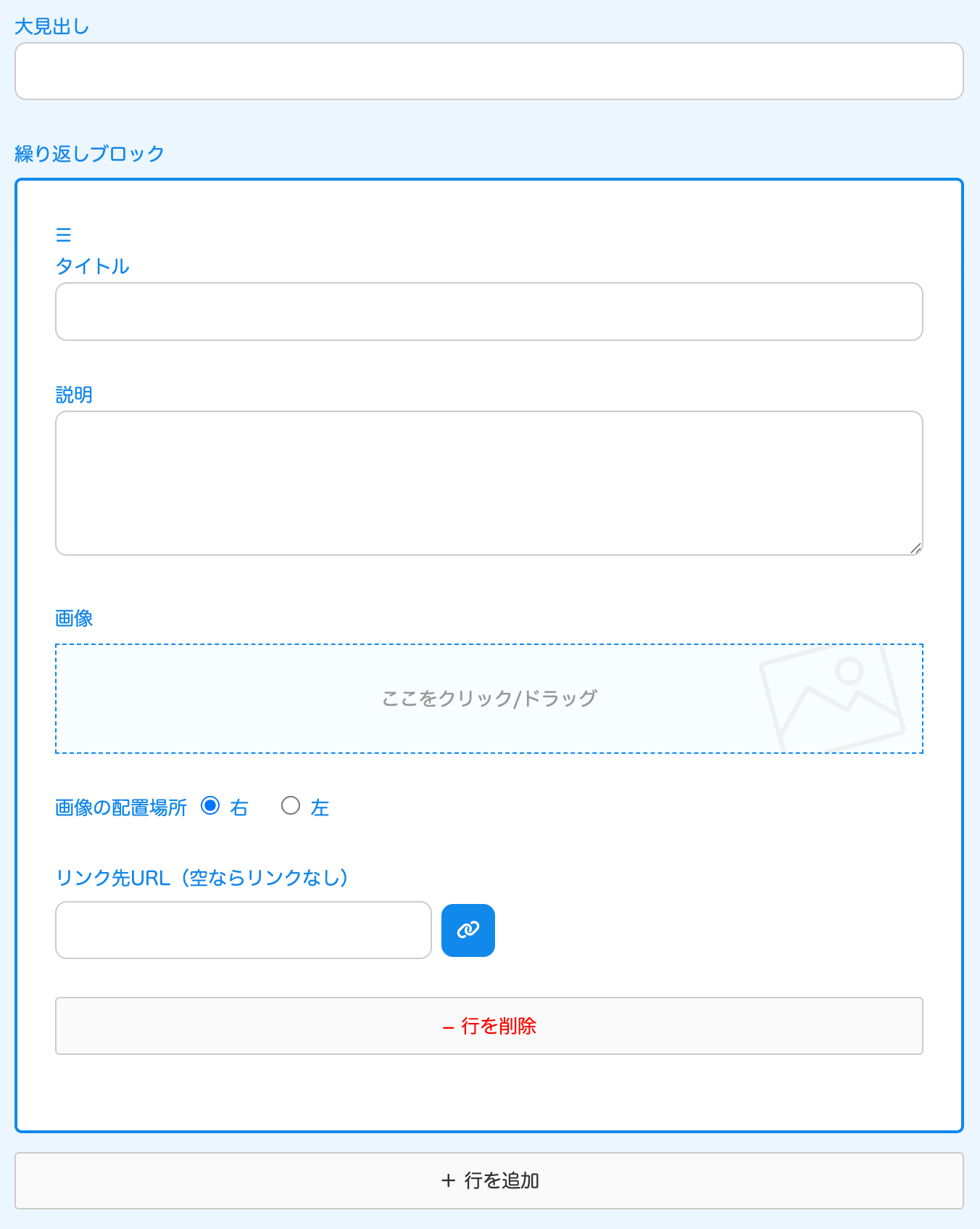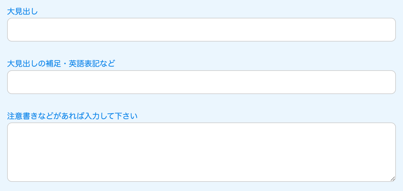 ↓自動で出てくる入力フォーム。お知らせの場合は、見出しのみです。