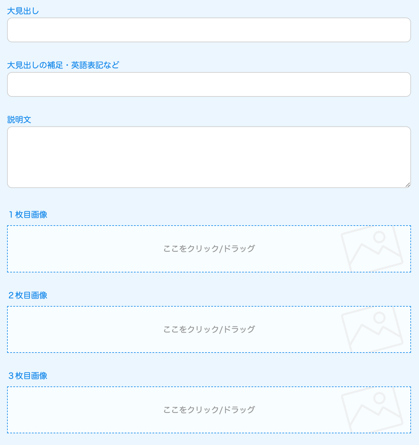 全て使う必要はなく、たとえば、画像はどちらか1つだけアップロードしてもOK。