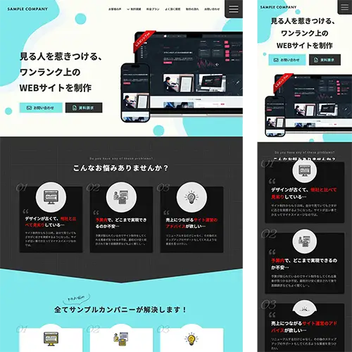 イメージしやすいように業種テーマを設定していますが、中身を入れ替えればどのような業種でも対応できます。